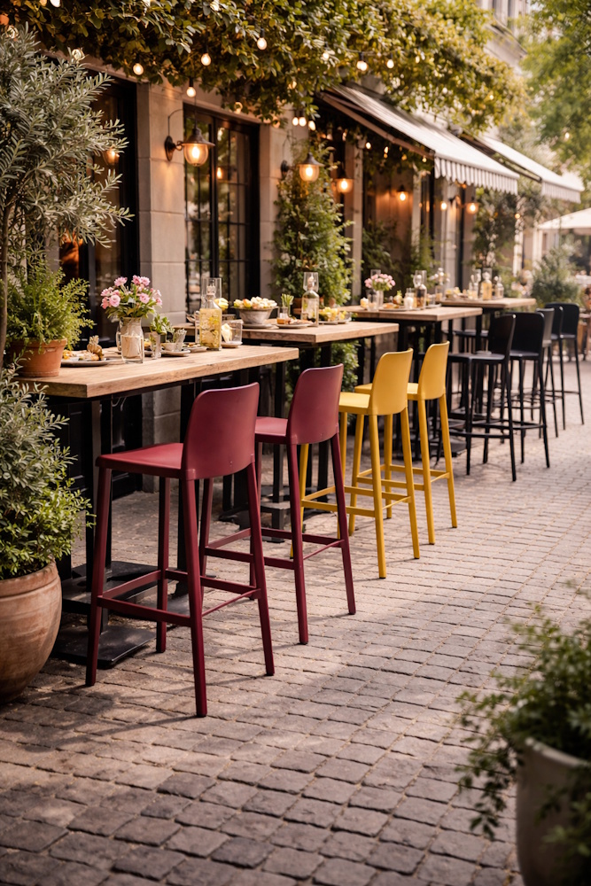 De barkruk is leverbaar in diverse eigentijdse kleuren en voorzien van een speciale kleurprotector, waardoor hij langdurig mooi blijft – zelfs bij buitengebruik. Ideaal voor horecaondernemers die kwaliteit en design willen combineren.