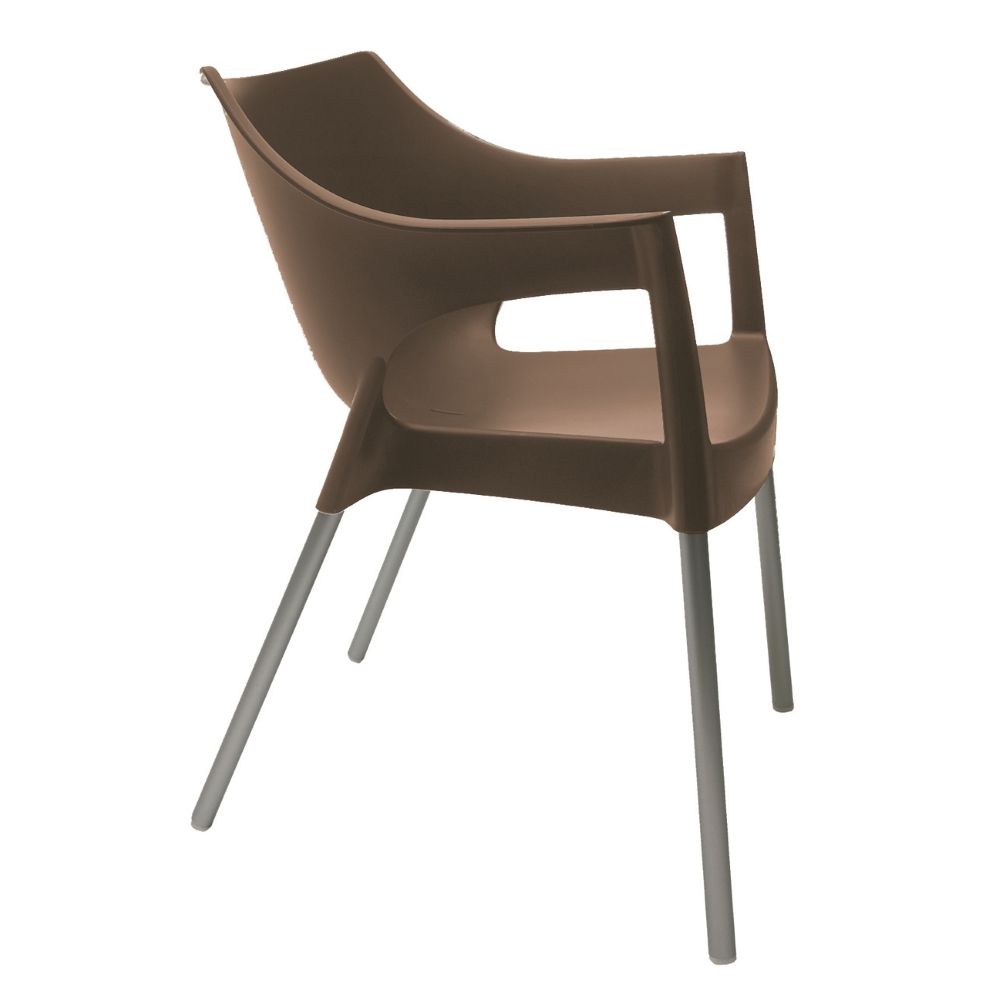 De Pole stoel van het Spaanse merk Resol is een uiterst comfortabele terrasstoel die ook als binnen stoel het heel goed doet. De kunststof kuip, welke met glasvezel is versterkt, is voorzien van UV bescherming en aluminium poten. De stoel is stapelbaar en dus eenvoudig op te bergen.