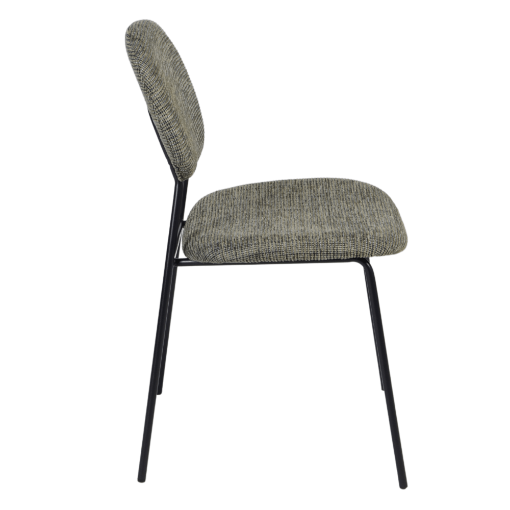 De Sebas restaurantstoel is een slimme keuze als de ruimte beperkt is. Een degelijke restaurantstoel voor een ongekend lage prijs. Voor elk restaurant of bistro een aanwinst maar ook als leestafel stoel of eetkamer stoel een goede keuze. Modern en stijlvol stalen frame met een transparant voorkomen en de gemêleerde stoffering maken het plaatje compleet. In 2 kleuren met overwegend grijs en groen tinten waarbij ook bruin en blauw in verwerkt zitten waardoor de stoel met veel kleurstellingen is te combineren.