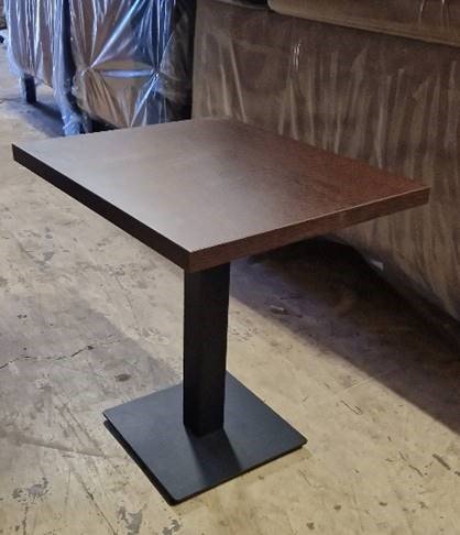 Melamine hout decor tafelblad 70×60, 40mm dik met nieuw tafelonderstel gietijzer. Minimale afname 5 stuks.