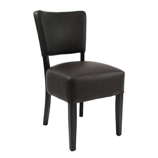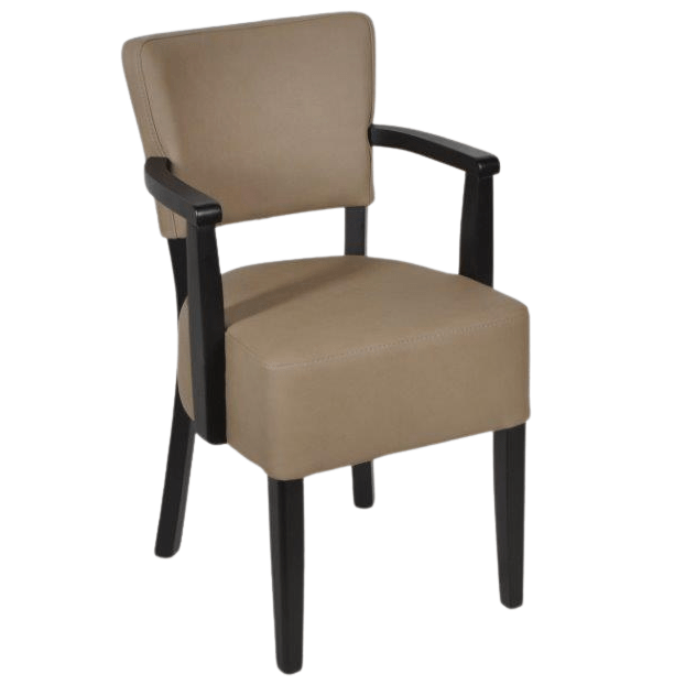 Supersterke armstoel bekleed met een hoge kwaliteit kunstleder. De houten poten en armleuningen zijn wenge gebeitst.